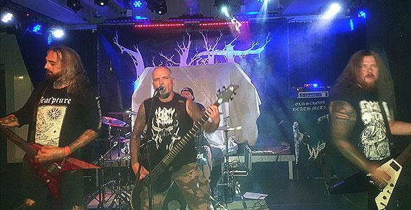 Die Death Metaller WILT aus Herford leiten den Abend ein: Old School Death Metal nach dem Motto „Stumpf ist Trumpf“ und eine ordentliche Portion Eigenhumor sorgen schon in der ersten halben Stunde für gewaltiges Headbangen und gute Stimmung.