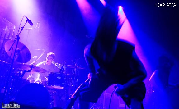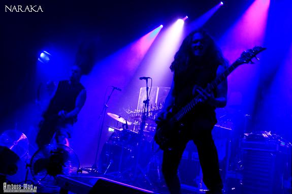 NARAKA aus Frankreich eröffneten den Abend, wenn sie auch keine Begeisterungsstürme auslösten. Wie gewohnt, waren Sound und Licht noch nicht auf 100% „gefahren“. Auch der Platz auf der Bühne war eingeschränkt, da bereits für alle Bands aufgebaut war. Die 4 Mannen haben sich aber alle Mühe gegeben und konnten Applaus für sich verbuchen. Es gab sogar einen Song, bei dem der Gesang von Lindsay Schoolcraft (auch schon mal bei Cradle Of Filth am Keyboard) vom Band lief. Auch Headbanging war in den ersten Reihen zu verzeichnen, somit haben sie ihren Namen in die Welt hinausgetragen und sicherlich den einen oder andern Euro eingestrichen.
