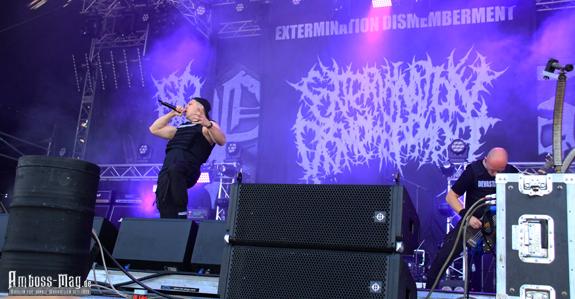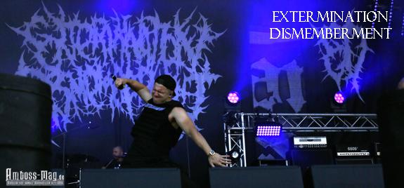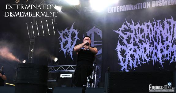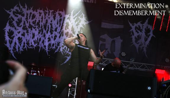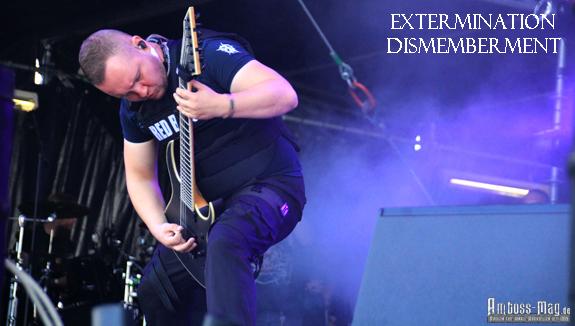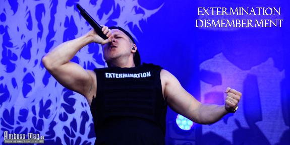 Dieses Jahr gab es zwei Länderpremieren. EXTERMINATION DISMEMBERMENT debütierten für ihre Heimat Belarus. Mit ihrem mega Groove, den fetten Subkicks und ihren SEK-Klamotten, machten sie gut was her und konnten mich beeindrucken, was bei Slam/Brutal Death bei mir schon was bedeutet. Das Festival ging wirklich gut los. Auch Wolle von Rotten Noises TV hat in der ersten Reihe mächtig gebangt und die Band hart gefeiert.