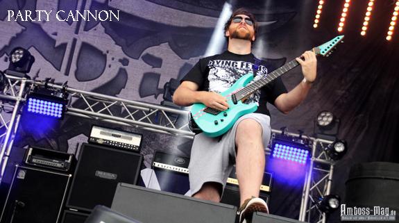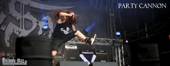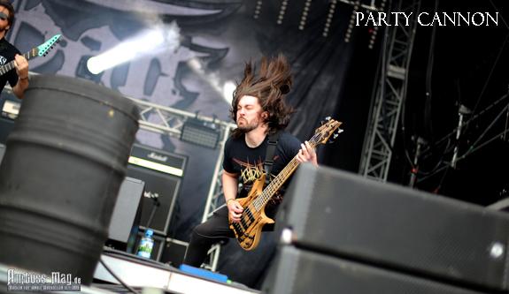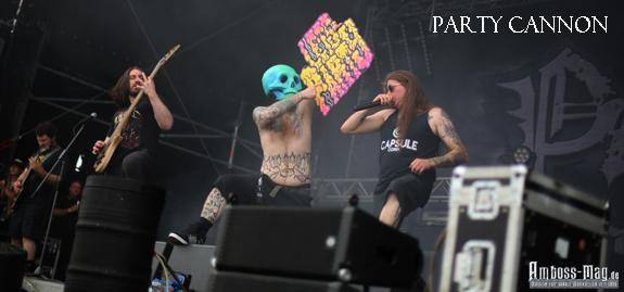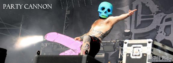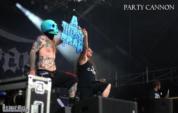 Grindcorefrühstück und wir sind wie immer dabei, weil es einfach Spaß macht. Wie werden nicht jedes Jahr musikalisch überzeugt, aber halten an der Tradition fest. Cliteater werden wohl für immer die beste Band auf diesem Spot bleiben, aber da es die verrückten Niederländer ja nicht mehr gibt, können für uns ab jetzt gerne jedes Jahr PARTY CANNON spielen. Beschrieben wurden sie als Höhlenmenschen-Slam für Menschen mit Negativ-IQ. Bei Songansagen wie der zum letzten Song, in dem es um einen Blowjob geht, der so schmierig ist, dass man sich danach den Arsch abwischen muss, kann ich dem zustimmen. Musikalisch abgeholt hatten wir lange nicht so viel Spaß am späten Freitagvormittag. Sehr cool.