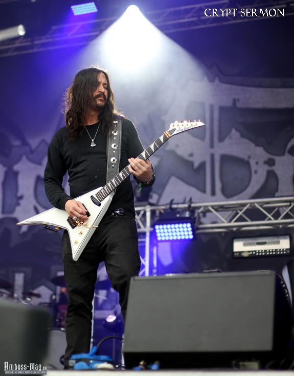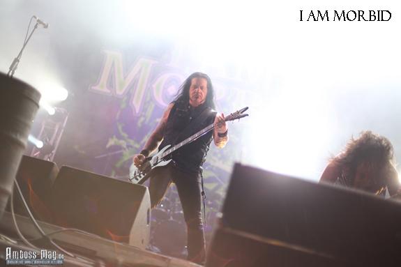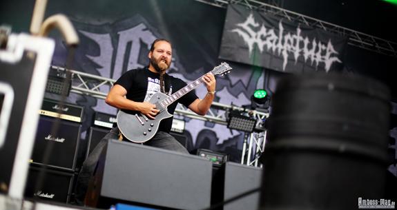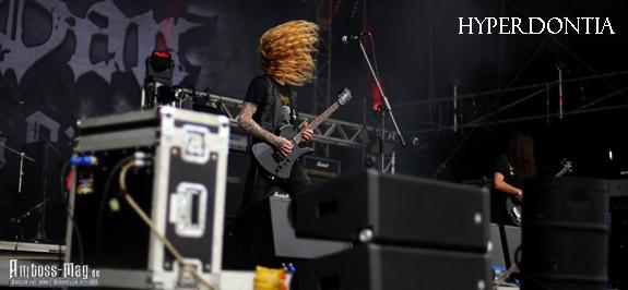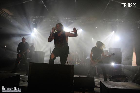 Die Vorfreude kippte bei mir aber relativ zügig. Gitarrist Bill Hudson, dachte wohl er tritt mit Doro auf und kam mit einer toupierten Frisur auf die Bühne, mit der er auch bei Poison nicht aufgefallen wäre und wirkte irgendwie deplatziert. Irgendwie kam beim ganzen Gig keine richtige Freude bei mir auf, ich hatte das Gefühl es fehlt da so einiges. Natürlich waren das nicht Morbid Angel, aber trotzdem fehlte mir Trey auf der Bühne wirklich sehr. Vincent ließ während des Auftritts auch wieder fragwürdige Sachen von sich. Bei Songs wie „Rapture“ freute ich mich wiederum vor der Bühne zu stehen, aber nach Ende des Gigs war ich eher enttäuscht, als das es mich tief bewegte, wie ich erhofft hatte. Von „megageil“ bis „schlechtester Auftritt des Festivals“ konnte ich beim Verlassen des Infields alles aufschnappen. Ich war auf jeden Fall die Fraktion dazwischen. Einige Songs fand ich echt geil, den Auftritt im Ganzen aber nicht.