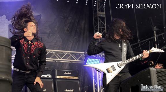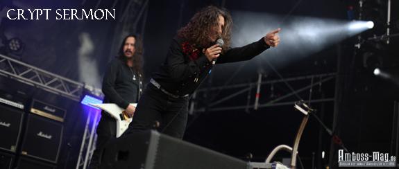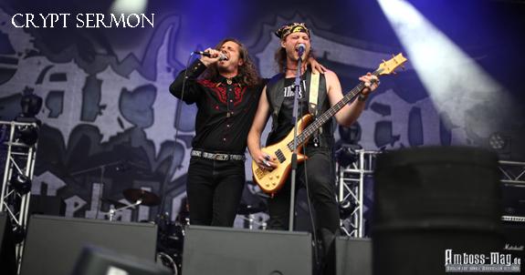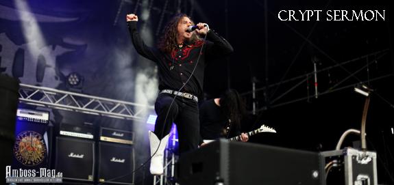 Epic Doom Metal ist, bis auf ein paar ganz wenige Ausnahmen, ja so gar nicht mein Genre. Den Amerikanern CRYPT SERMON habe ich trotzdem eine Chance gegeben, da mein Bruder sie mag. Musikalisch durchaus interessant, konnte der Gesang mir allerdings gar nichts geben. Das Fotografieren hingegen hat sich für mich gelohnt. Und den Song, den ich ausschnitthaft per Videonachricht an meinen Bruder geschickt habe, kannte er auch. Er hat sich gefreut. Die Menge vor der Bühne war definitiv anderer Meinung als ich.