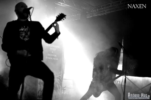 Die zweiten des Band des Zelttages kam auch aus Münster, ist musikalisch aber ganz anders gelagert. NAXEN bringen ihren kalten Überlängen-Black Metal mit. Ich durfte die Band schon mal auf einem kleinen Tagesfestival in der Pampa auf einem Bauernhof bewundern. Da haben sie mich völlig umgehauen, was ihnen auf dem Festival leider nicht so gelingt, was ich aber nicht der Band zuschreibe. Uhrzeit und Temperatur im Zelt machen es mir da nicht leicht. So verlasse ich nach den Fotos etwas enttäuscht das Zelt. Ich hatte mich auf die Band gefreut, es sollte aber nicht unser Moment werden. Ich hoffe, dass ich sie nochmal unter anderen Umständen erwische. Der Eindruck vom ersten Auftritt hat sich dadurch natürlich nicht geändert.