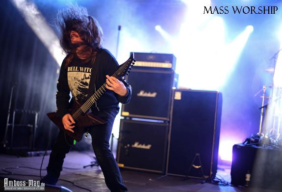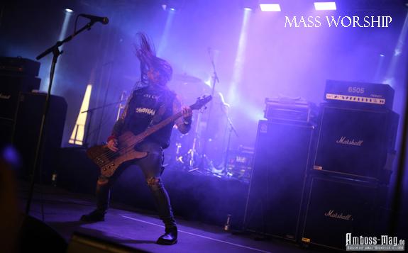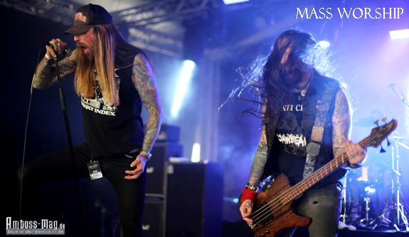 MASS WORSHIP aus Schweden verbinden ihren wuchtigen Death Metal, der selten richtig Gas gibt mit viel Groove und etwas crustigem. Die Gitarren kommen schon fast djentig anmutend daher. Eine absolut interessante Mischung. Auf Scheibe konnte mich das Ganze nicht so richtig packen, ich konnte mir allerdings schon vorstellen, dass das live ein massiver Arschtritt wird. Damit lag ich dann total richtig. Das was mir auf Scheibe fehlte, macht live der Druck bei entsprechender Lautstärke wieder wett. Teilweise fühle ich mich ein wenig an Meshuggah erinnert, aber nicht so krass vertrackt. Die Band packt mich total und auch das Publikum macht mächtig Action. Ich werde die Scheiben nach dieser Prügel auf jeden Fall noch mehrmals checken.
