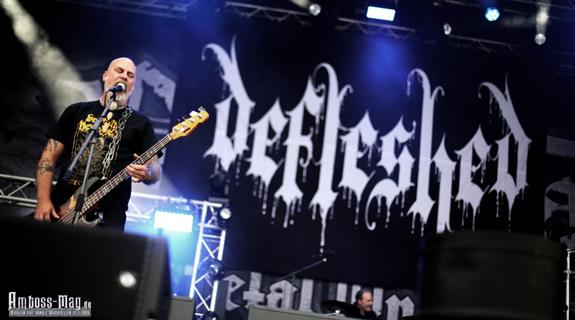 Bei Death/Thrash aus Schweden, hab ich eigentlich immer nur an The Crown gedacht und DEFLESHED völlig verdrängt. Liegt aber wohl auch an ihrer 16 Jahre langen Pause in der ich viel musikalische Sozialisation erfahren habe. „Fast Forward“ von 1999, welche anscheinend schon immer das Motto der Band getragen hat, lief damals durch meine Anlage, danach gingen die beiden Nachfolger irgendwie an mir vorbei. „Grind Over Matter“ von 2022 sagte mir musikalisch aber vom Sound her nicht so zu. Auf alles komplett geschissen… Live haben mir die 3 so mächtig auf die Schnauze gehauen, dass ich drei Schritte zurück bin, obwohl die beiden die vorne stehen Instrumente tragen und einer von beiden auch och ans Mikrofon „gefesselt“ ist. Dieser Auftritt hat langfristig Eindruck bei uns hinterlassen und zählt für uns zu einem der besten des Festivals!