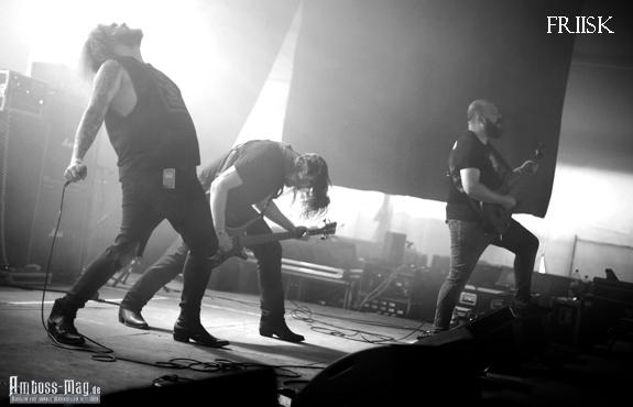 Die Leeraner Truppe FRIISK kommt bei ihrem atmosphärischen Black Metal ohne “Schnickschnack” aus. Keine Nieten, keine Bemalung, keinen besonderen Bühnenaufbau, kein Feuer, keine rituellen Gegenstände. Die einzige Besonderheit bei ihnen sind die vereinzelten Texte im Saterfriesischen, welches im Saterland im Nachbarkreis Cloppenburg noch von ca. 1500 bis 2000 Leuten gesprochen wird um vom Aussterben bedroht ist. Das gut gefüllte, zum Schluss rappelvolle Zelt ist bei den Nordlichtern und spendet viel Applaus. Das hat sich gelohnt, live haben sie mich um einiges mehr gepackt, als bis jetzt auf Scheibe!