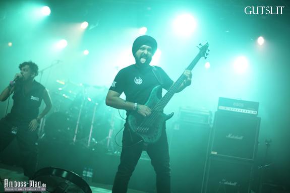 Das Debüt für Indien gaben GUTSLIT! Das Debüt des Hochzeitsantrags auf der Bühne, soweit ich weiß, dann jetzt halt auch. Ich hoffe sie haben dafür keine Spielzeit hergeben müssen. Ich möchte ja Musik sehen und nicht die Anträge unbekannter Menschen, die mich nicht interessieren. Musikalisch haben die Inder mit ihrem Brutal Death Metal, bei dem die Songs gerne von Serienmördern handeln, dann ordentlich Dampf gemacht. Viele Bands aus dem Genre sind für mich ja relativ austauschbar, GUTSLIT konnten mich aber überzeugen und begeistern. Über die evtl. Bedeutung eines Turbans wollte ich mich schlau machen, konnte allerdings nicht so richtig zufriedenstellend fündig werden. Der Bassist ist jedoch nie ohne zu sehen, zumindest habe ich ihn noch nicht ohne gesehen. Leute, checkt GUTSLIT!
