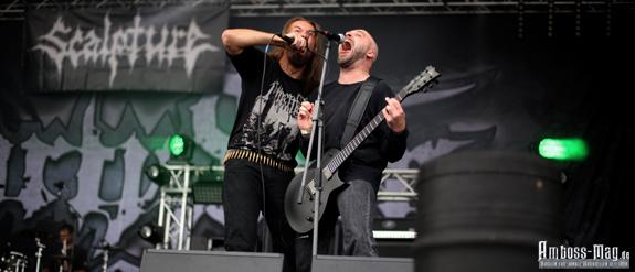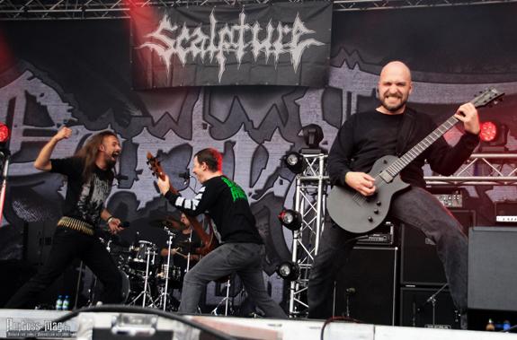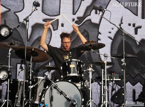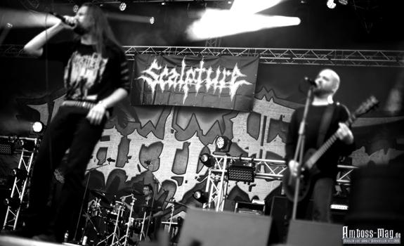 MACBETH hätte mich wirklich interessiert, vor allem weil sie ja das 40-jährige Bandbestehen gefeiert haben. Die Band ist ein Stück deutsche Geschichte, waren sie doch eine große Metalband, schon zu Zeiten der DDR. Trotzdem habe ich es nicht geschafft. Wahrscheinlich habe ich mich grad trinktechnisch auf Scalpture vorbereitet und mich früh angestellt um einen guten Platz im Graben zu bekommen.