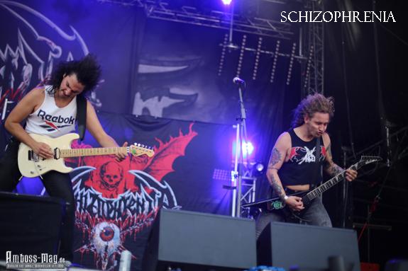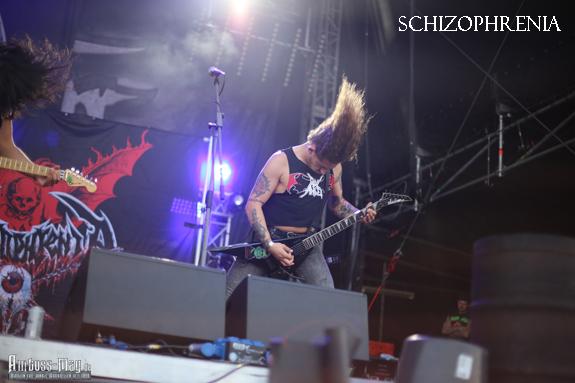 Die Jungthrasher von SCHIZOPHRENIA habe ich mit ihrer ersten EP ziemlich gefeiert. Danach konnten sie mich nicht wieder so begeistern, aber live sehen wollte ich sie auf jeden Fall. Und das hat sich mehr als gelohnt. So eine Spielfreude habe ich schon lange nicht mehr gesehen, von einer Band, die jetzt schon ein paar Jahre unterwegs ist. Falls es Show gewesen sein sollte, sind sie sehr gute Entertainer. Musikalisch nicht so ganz meins, hat mir das Zusehen und Fotografieren jedoch sehr viel Spaß bereitet, auch wenn die ’80er sehr hochgehalten werden, auch optisch, von denen ich ja nicht besonders viel halte. Würde ich mir aber definitiv nochmal geben.