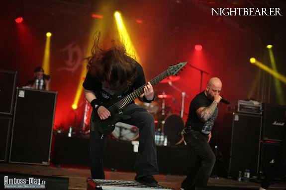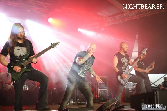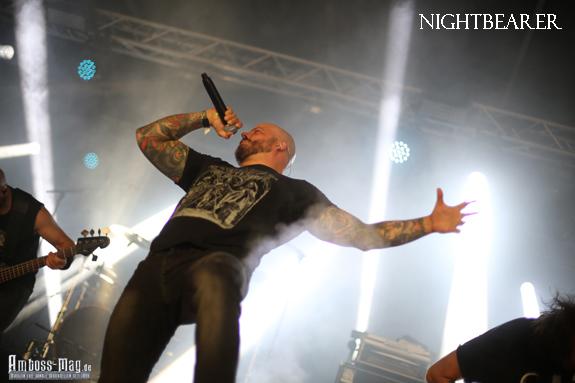 Damit ging es dann rüber zur Zeltbühne, Eröffnung des letzten Tages durch NIGHTBEARER. Die Paderborner haben nicht mal 2 Monate vorher ihr neues Album „Defiance“ über Testimony Records veröffentlicht, von dem zumindest in meiner Party.San-Blase überall die Rede war. Auch in Podcasts habe ich vorher davon gehört. Mir war die Band unbekannt, also hin da. Umso mehr hat sie mich dann umgeblasen. Das Publikum war sehr dankbar und hat die Band gefeiert, die in gutter Spiellaune war und ihr eigenes Fest auf der Bühne hatte. NIGHTBEARER behalte ich auf jeden Fall auf meinem Zettel.