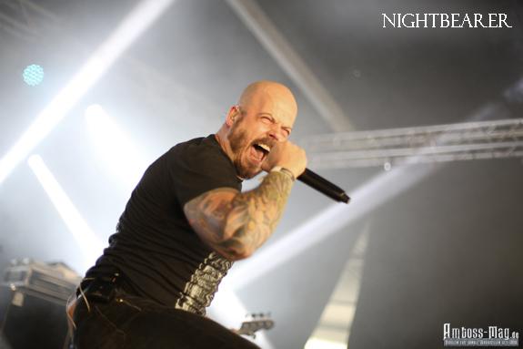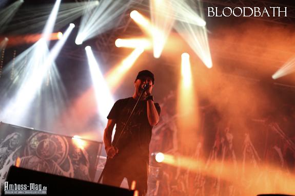 BLOODBATH beschlossen das Festival als Headliner am Samstagabend. Allein dieser Umstand hat schon Diskussionen bei uns ausgelöst. Dazu muss man natürlich sagen, dass niemand von uns ein Festival organisiert, geschweige denn in dieser Größe! Ein oder zwei Positionen vor dem Headliner hat ihnen jeder von uns zugesprochen, aber nicht mehr. Da hatten wir den Auftritt aber noch nicht gesehen. Keine Ahnung wer Jonas Renkse am Bass ersetzt hat (lt. der metallischen Enzyklopädie ist es zur Zeit Joakim Antman von Lik). Anders Nyström stand alleine als Gitarrist auf der Bühne. Beim letzten Mal trug Nick Holmes noch Mönchstracht mit großem Kreuz und Blut im Gesicht. Dieses Mal normale Klamotten und ein Cap, wie Anders Nyström auch. Kein Bock auf Schminke und Tracht? Zusätzlich benutze Nick Holmes einen Gesangseffekt, der zwar nicht schlecht klang, aber auch immer heraus zu hören war. Zwischen zwei Songs sagte er dann auch noch mit eingeschaltetem Effekt: This is actually my normal voice! Da war dann für mich alles vorbei. Natürlich bleibt der Band vollkommen selbst überlassen, wie sie sich präsentiert, aber ich finde als Headliner sollte man zumindest schon das Gefühl vermitteln, dass man Bock hat das zu tun, was man da grad tut. Das war eine Demontage des Selbst in meinen Augen, andere hingegen waren begeistert. Für mich hätte man definitiv die erste und letzte Band tauschen sollen…