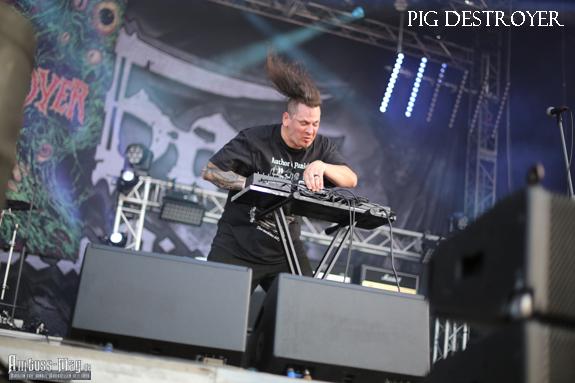 Der bisher einzige Gig von PIG DESTROYER hat für uns auf dem Neurotic Deathfest 2013 stattgefunden. Deswegen freute mich ich mich riesig auf die verrückte Truppe, auch wenn mir die aktuellen Sachen weniger zusagen, als das damalige Material. Zu meinem Glück gab es dann nur Stuff von Album 2-5. Genau mein Ding. Elektromann Blake, der leider letztes Jahr verstorben ist, war von Alex Cha ersetzt worden, der aktuell auch den Elektrokram für Nailbomb macht, geil! Entsprechender Alex ist dann so krass abgegangen auf der Bühne… Ich habe selten jemanden gesehen, der so Bock auf das hatte, was er da grad tut und bei dem nicht gestellt wirkt. Andere Stimmen nach dem Auftritt sprachen von absoluter Scheiße oder total verrücktem Kram. Ich war so begeistert, dass ich glatt verpennt habe zur Zeltbühne zu wechseln.