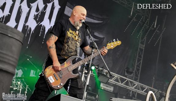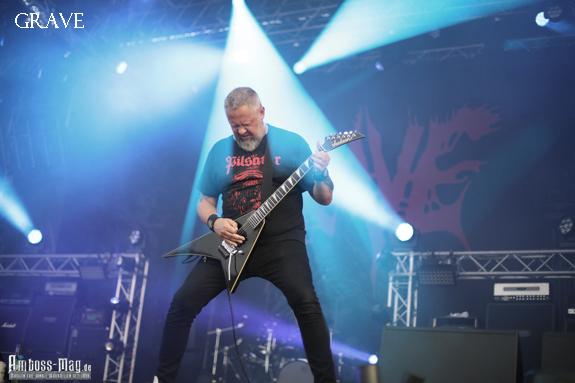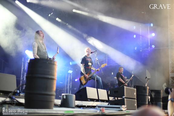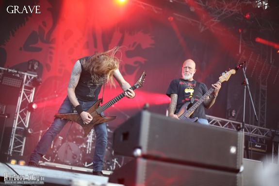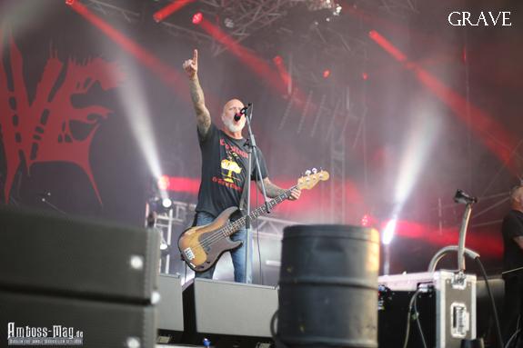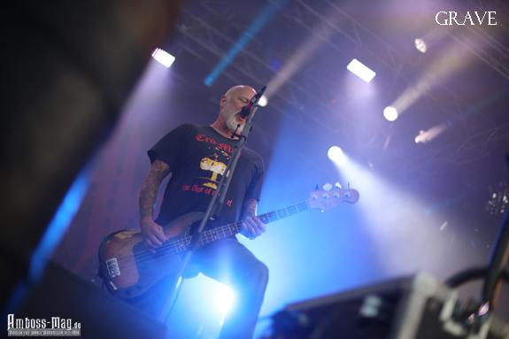 GRAVE, eine der wichtigsten Bands des schwedischen Death Metals spielte dieses Jahr mindestens 4 Auftritte im Original Line-Up und das Set bestand nur aus Songs der ersten 3 Alben. Danach sind sie ja bekanntlichermaßen implodiert. Und 1996 mit dem Folgealbum „Hating Life“ bin ich dann erst eingestiegen. Auch wenn die 3 Alben, von denen heute kredenzt wurde sehr selten bei mir liefen, freute ich mich wie Bolle auf den Gig. Umso mehr, weil wir die Info bekommen haben, dass sie am Vortag auf dem Brutal Assault mächtig abgeräumt haben. Die Kulttruppe startete dann mit dem Titeltrack des Debütalbums und ich war direkt hin und weg. Es war schon eigenartig Ola Lindgren nicht am Mikrofon zu sehen, aber das machte heute ja grad den Reiz aus. Der Sound war mächtig und die Kettensäge schien direkt durch das Gehirn zu wandern. Zwischendurch war Ola offensichtlich ziemlich pissed, woran es lag konnte ich allerdings nicht ausmachen. Ich war völlig begeistert von diesem Auftritt und die Position 3 Slots vor dem Headliner war völlig gerechtfertigt. Seitdem läuft bei mir nur noch „You´ll Never See…” wenn ich Bock auf GRAVE habe und das habe ich.