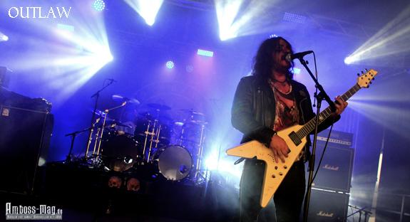 Auch OUTLAW brachten geilen Black Metal auf die Zeltbühne. Vorne im Zelt waren es mittlerweile 12000°C, weswegen ich dort nicht lange ausgehalten habe. Denn selbst hinten, wo es wesentlich angenehmer war, war es trotzdem noch schweißtreibend. Der Sound im Publikum war ganz gut, aber die Band hatte massive Soundprobleme auf der Bühne, wie ich später erfuhr. Sie selbst sagten, dass sie deswegen unendlich sauer war, was wiederum sehr gut für die Performance war. Auch wenn ich nicht besonders viel gesehen habe, hat es mir gut gefallen.