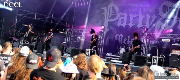 Stimmung zu Gothic Metal mit Horror Touch aufkommen zu lassen, im Sommer um 13.45h? Gar nicht so einfach! THE VISION BLEAK tun trotzdem ihre Bestes, versuchen auch immer wieder das Publikum mit einzubinden. Gegen die Temperatur und die Helligkeit können sie allerdings nicht anschwärzen. Und die Zugaberufe am Ende können natürlich leider auch nicht erfüllt werden.