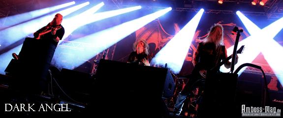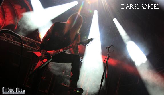 Thrash-Legende DARK ANGEL sind somit erster Headliner des Festivals und damit die ersten 33% auf dieser Position, die ich dort nicht erwartet hätte. Ich erkenne ihre Position und ihren Stand an, habe aber keinen Bezug zu der Band. Jedoch sehe ich Gene Hoglan immer gern am Schlagzeug und auch heute hat er wieder abgeliefert. Der Rest war weder musikalisch noch sonstwie interessant, wobei ich neidlos zugestehen muss, dass die Band die komplette Zeit richtig Gas gibt auf der Bühne und Sänger Ron plötzlich komplett im Publikum verschwunden war. Nach 4 Songs wird dann die komplette „Darkness Descends“ rausgehauen. Für viele ein Traum. Somit endet der erste Festivaltag.
