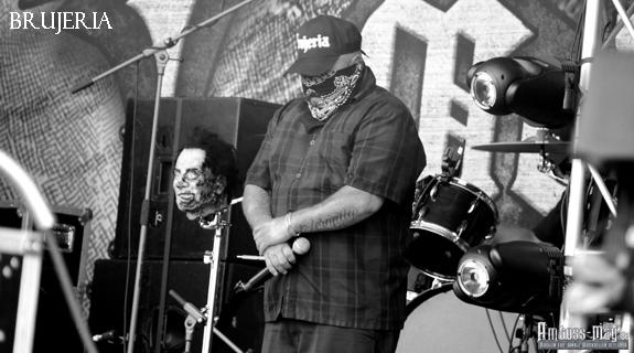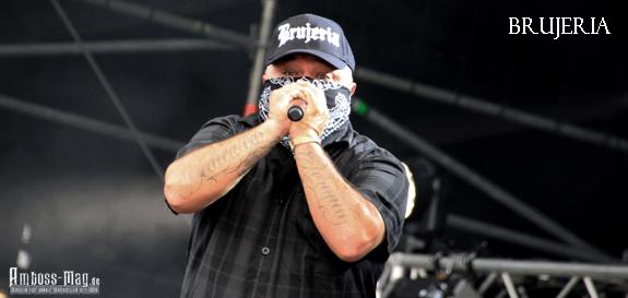 BRUJERIA! Was soll ich sagen? Live immer eine Bank und auch auf Scheibe nie eine schlechte Wahl. Die internationale Band, die eine pseudomexikanische Strassengang dartstellt, hatte letztes Jahr einiges zu verdauen. Beide Gründungssänger, Pinche Peach und sein Cousin Juan Brujo, sind an Herzproblemen verstorben. El Sativo, Sohn von Juan Brujo, setzt die Familientradition am Schlagzeug fort. Reisenegger an der Gitarre, war der einzige, den ich erkannt habe. Nur eine Gitarre, nur ein Gesang war etwas gewöhnungsbedürftig, hat dem fetten Livesound aber keinen Abbruch getan und Power hat die Band sowieso. Die kam auch definitiv, wie immer rüber. Die Band ist simpel, dafür umso druckvoller, weil man sich nicht um Firlefanz kümmert. Im Backdrop gedenkt man der „gefallenen Brüder“. Das bisschen Gänsehaut, welche deswegen aufkommen mag, wird durch Death/Groove Metal/Grindcore wie ein Drive-By aus dem nichts weggeblasen. Die Setlist war ausschließlich aus den ersten drei Alben zusammengestirckt, was mir persönlich sehr gut gefiel. Habe ich mir Gedanken gemacht ob die Band so funktionieren wird? Ja! War es berechtigt? NEIN!